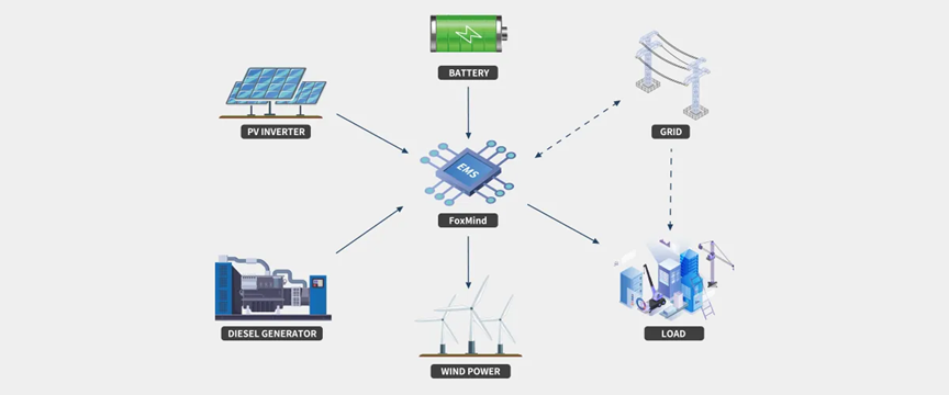 Foxtheon’s FoxMind is an intelligent hybrid industrial energy monitoring system that autonomously controls power distribution among generators, battery storage, photovoltaic (PV) systems, and mains. This innovative approach optimizes the most economical power management mix for the entire system, ensuring efficiency and reliability across various applications.